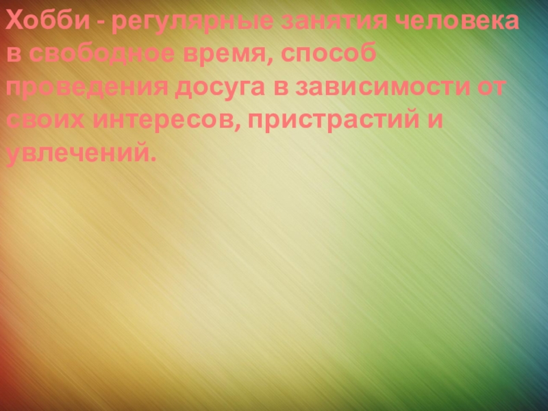 Слайд 2Хобби - регулярные занятия человека в свободное время, способ проведения досуга