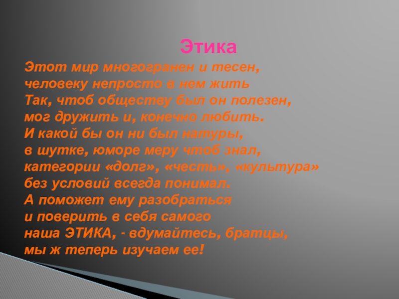 Это сайт презентаций, где можно хранить и обмениваться своими презентациями, докладами, проектами, шаблонами в формате PowerPoint с другими пользователями. Мы помогаем школьникам, студентам, учителям, преподавателям хранить и обмениваться учебными материалами.