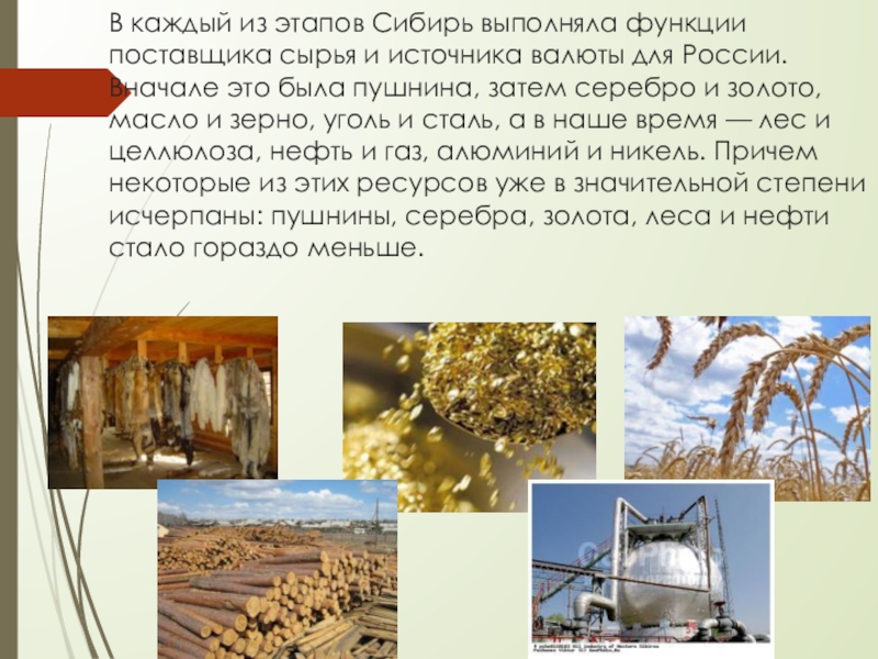 Слайд 15В каждый из этапов Сибирь выполняла функции поставщика сырья и источника
