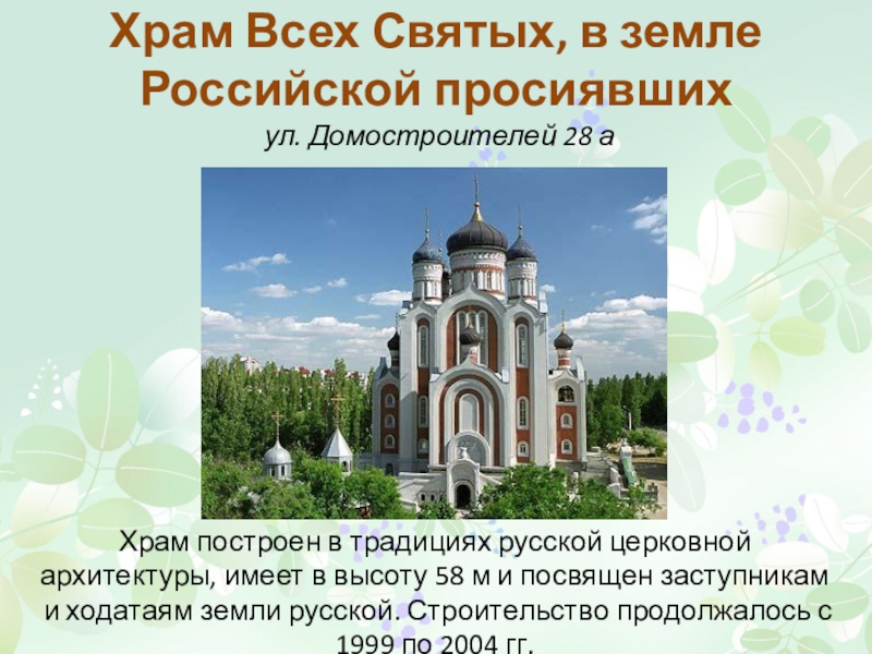 Слайд 13Храм Всех Святых, в земле Российской просиявших