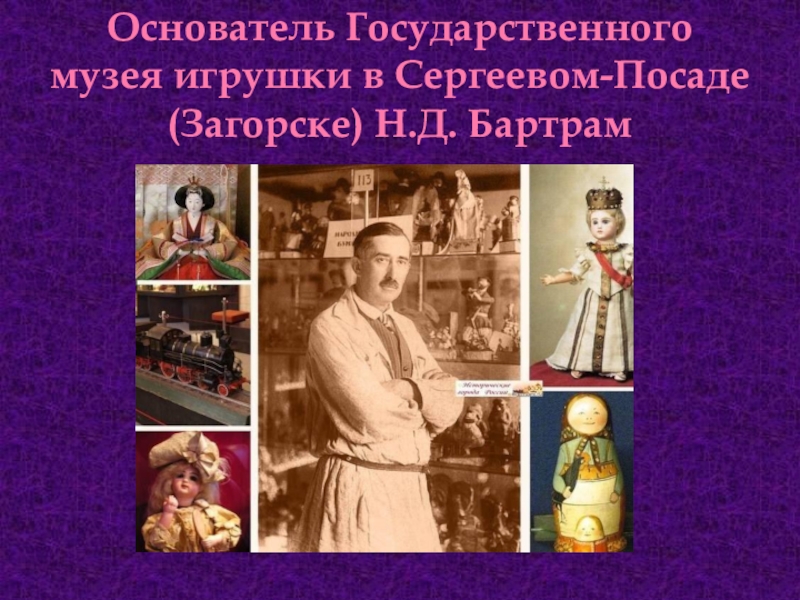 Слайд 3Основатель Государственного музея игрушки в Сергеевом-Посаде (Загорске) Н.Д. Бартрам