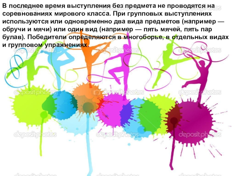 Слайд 3В последнее время выступления без предмета не проводятся на соревнованиях мирового
