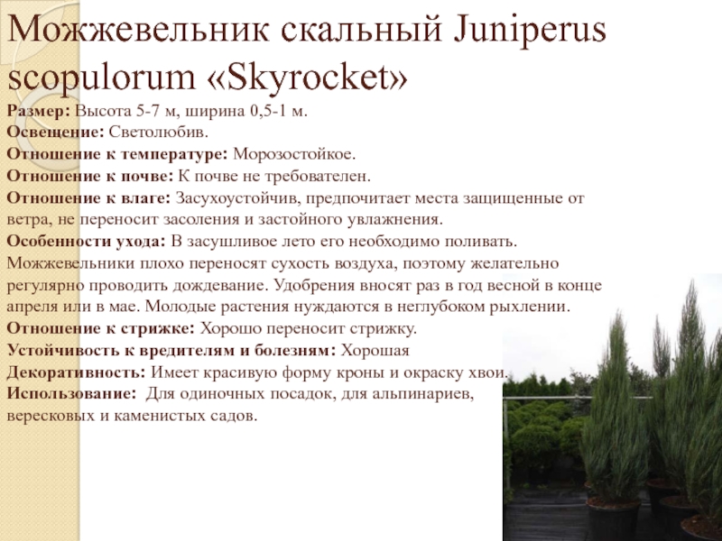 Слайд 9Можжевельник скальный Juniperus scopulorum «Skyrocket»