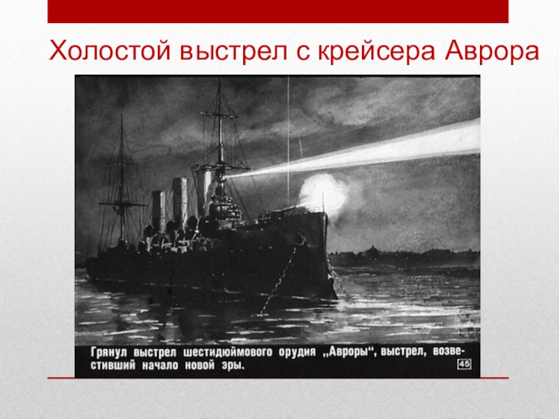 Слайд 12Холостой выстрел с крейсера Аврора