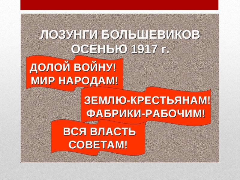 Слайд 94. Назовите лозунги большевиков во время октябрьской революции 1917 года