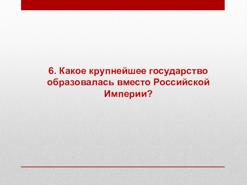 6. Какое крупнейшее государство образовалась вместо Российской Империи?