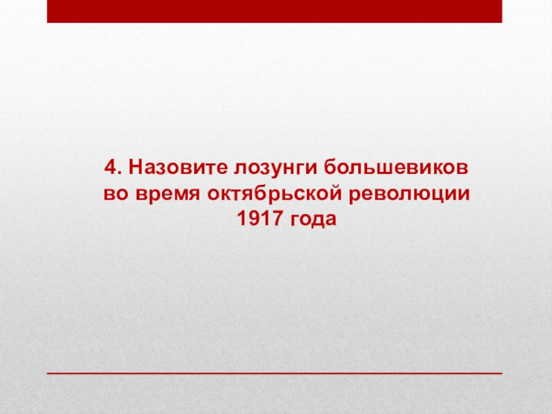 4. Назовите лозунги большевиков во время октябрьской революции 1917 года