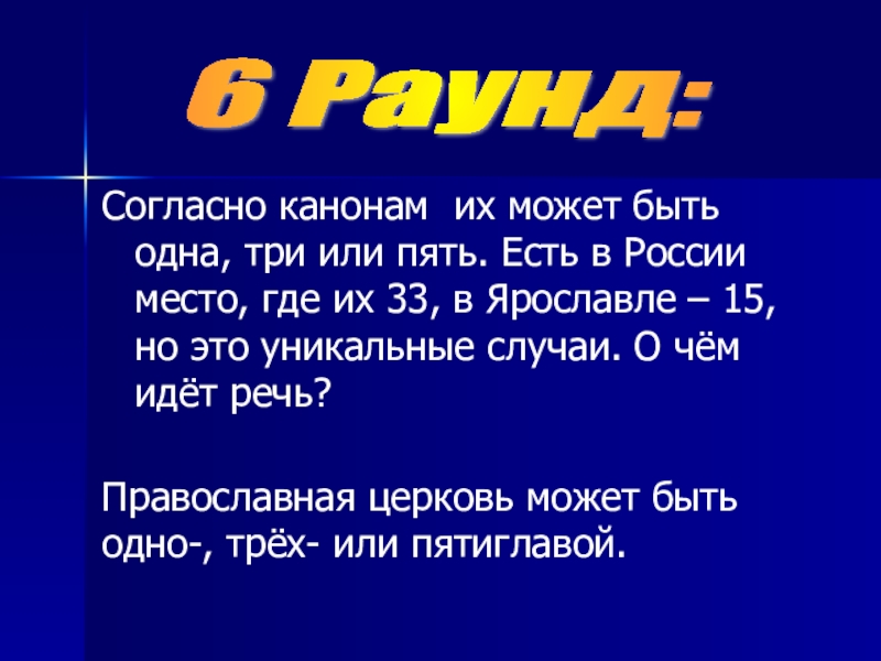 Православная церковь может быть одно-, трёх- или пятиглавой.