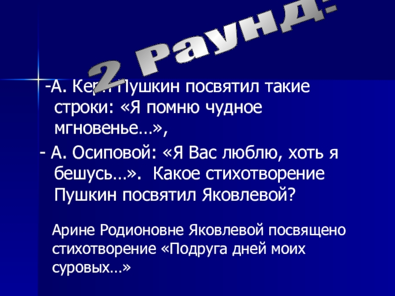 Арине Родионовне Яковлевой посвящено стихотворение «Подруга дней моих суровых…»