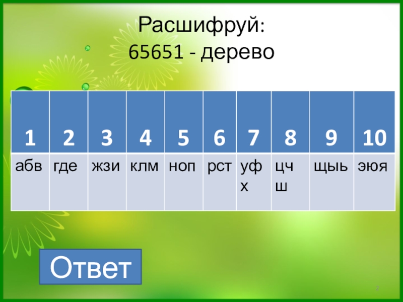 Слайд 2Расшифруй: 65651 - дерево