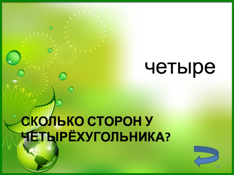 Слайд 20Сколько сторон у четырёхугольника?