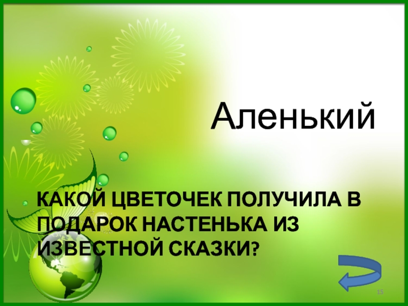 Слайд 15Какой цветочек получила в подарок Настенька из известной сказки?