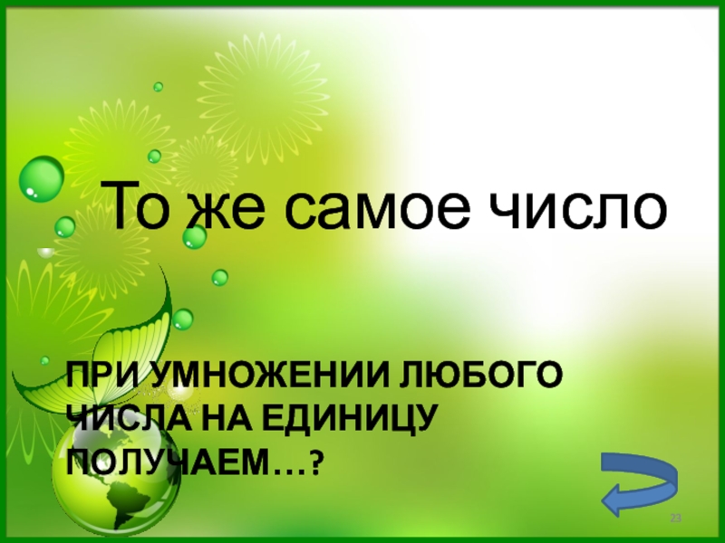 Слайд 23При умножении любого числа на единицу получаем…?