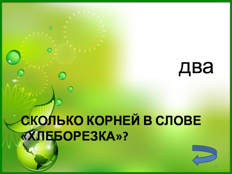 Слайд 31Сколько корней в слове «хлеборезка»?