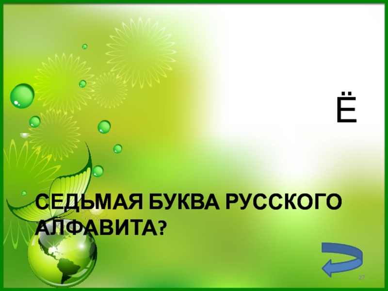 Слайд 27Седьмая буква русского алфавита?