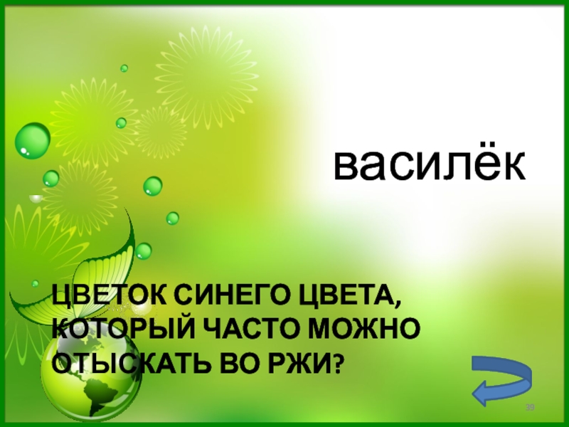 Слайд 39Цветок синего цвета, который часто можно отыскать во ржи?