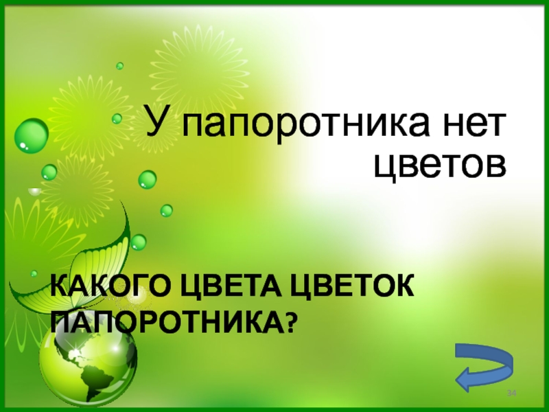 Слайд 34Какого цвета цветок папоротника?