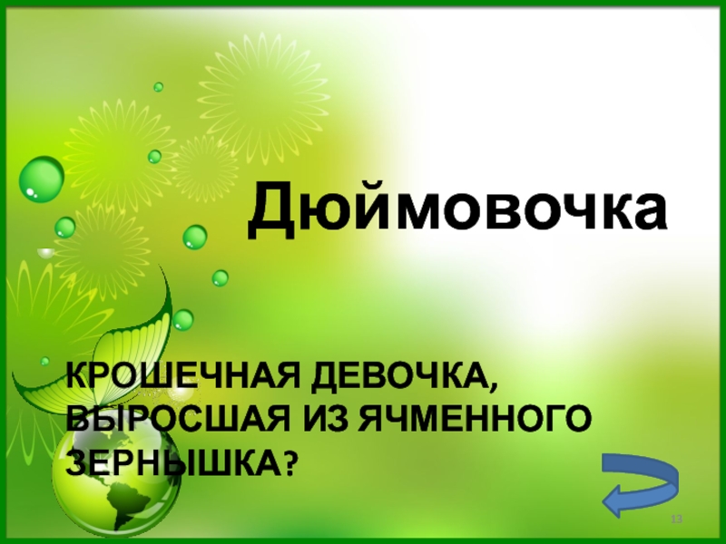 Слайд 13Крошечная девочка, выросшая из ячменного зернышка?