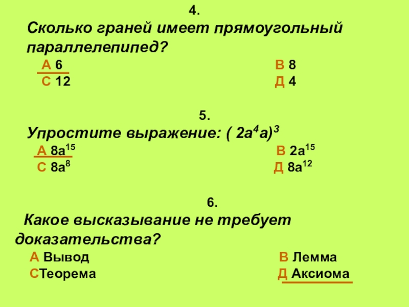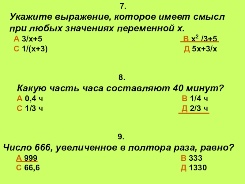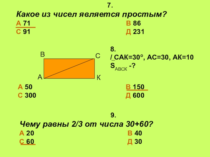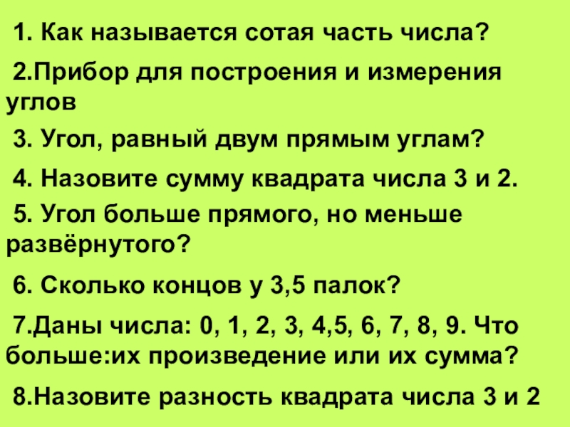 7.Даны числа: 0, 1, 2, 3, 4,5, 6, 7, 8, 9. Что больше:их произведение или их сумма?