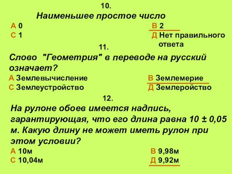 На рулоне обоев имеется надпись, гарантирующая, что его длина равна 10 ± 0,05 м. Какую длину не может иметь рулон при этом условии?