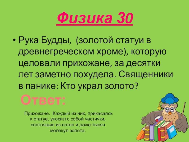 Прихожане. Каждый из них, прикасаясь к статуе, уносил с собой частички, состоящие из сотен и даже тысяч молекул золота.