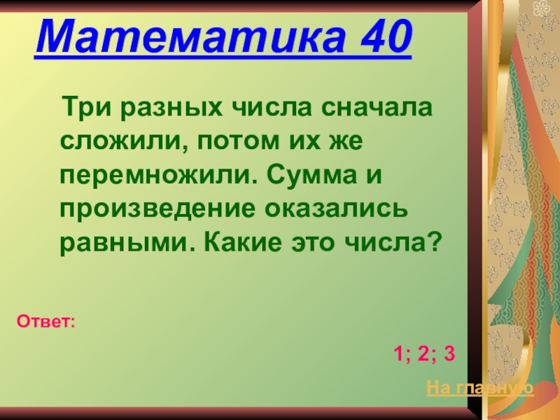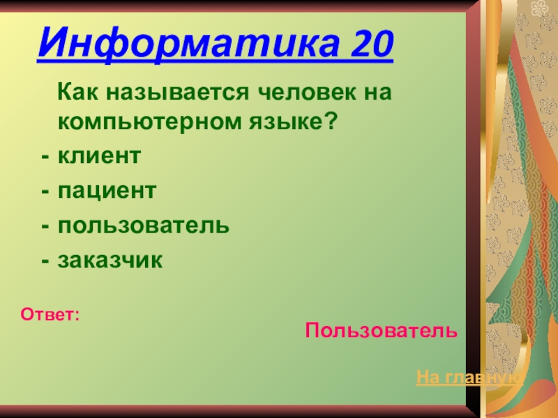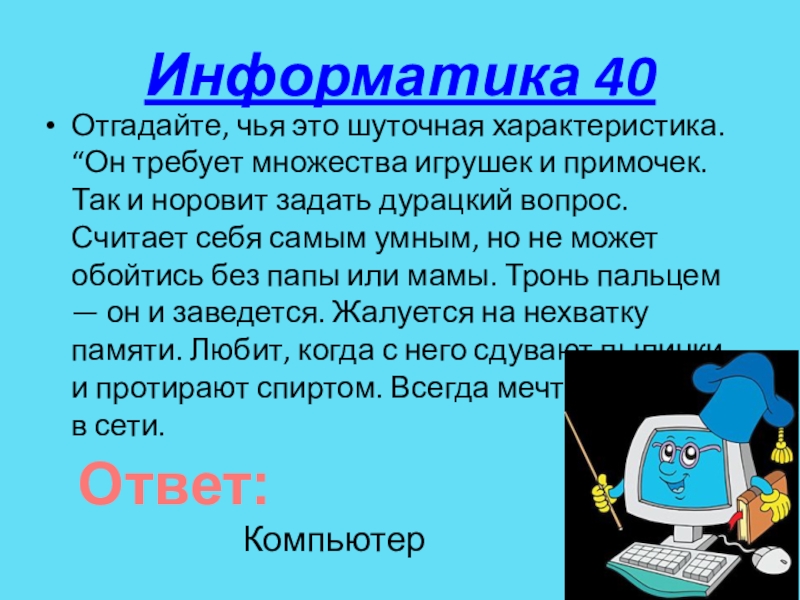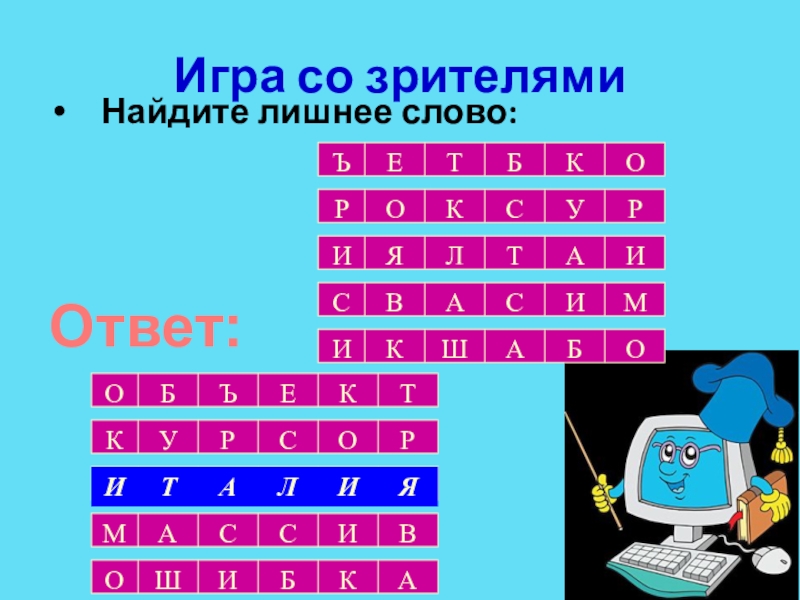 Это сайт презентаций, где можно хранить и обмениваться своими презентациями, докладами, проектами, шаблонами в формате PowerPoint с другими пользователями. Мы помогаем школьникам, студентам, учителям, преподавателям хранить и обмениваться учебными материалами.