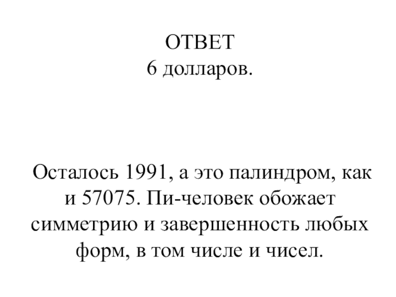 75 долларов 94 цента, выбрасывает 94 цента из окна. В другой раз, получив 1997 долларов, он тоже выбрасывает определенную сумму. Какую именно?