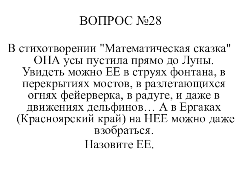 В стихотворении "Математическая сказка" ОНА усы пустила прямо до Луны.