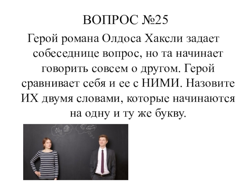 Герой романа Олдоса Хаксли задает собеседнице вопрос, но та начинает