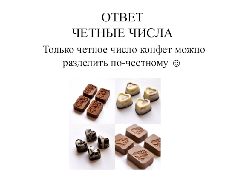предлагает каждому из детей поделить конфеты с соседом поровну.