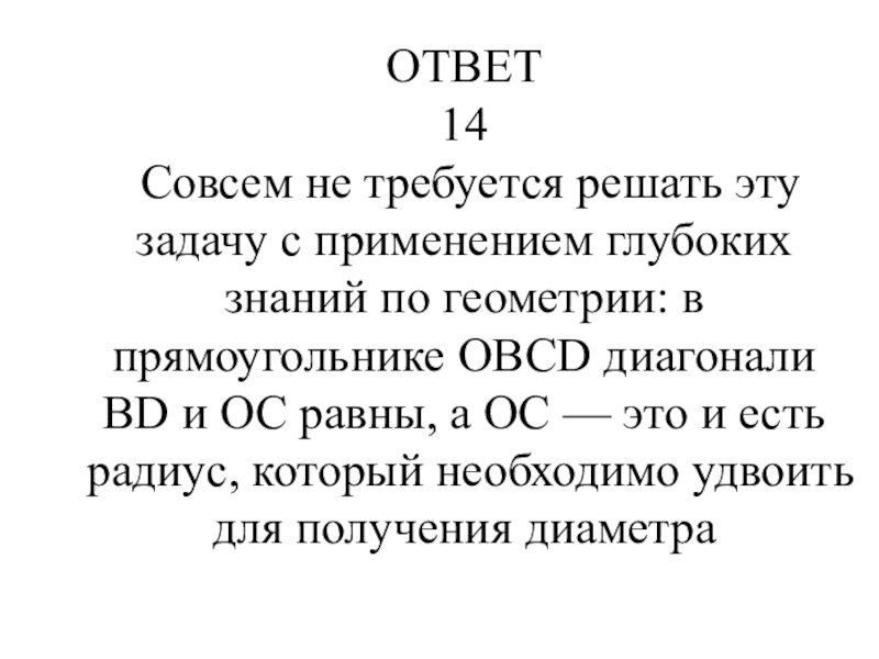 по геометрии: в прямоугольнике OBCD диагонали BD и OC равны, а OC — это и есть радиус, который необходимо удвоить для получения диаметра