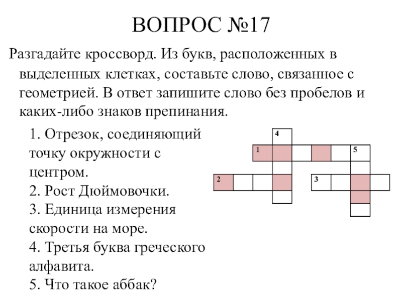 Разгадайте кроссворд. Из букв, расположенных в выделенных клетках, составьте