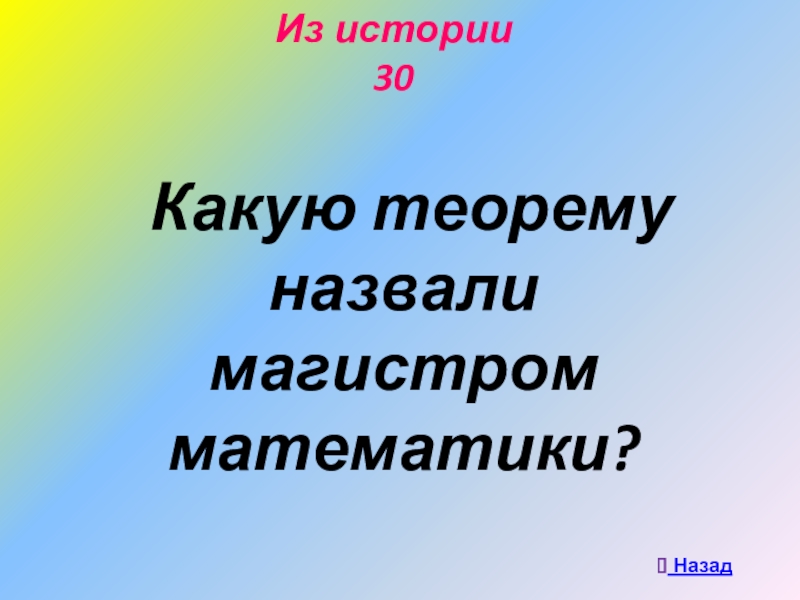 НазадИз истории 30 Какую теорему назвали магистром математики?