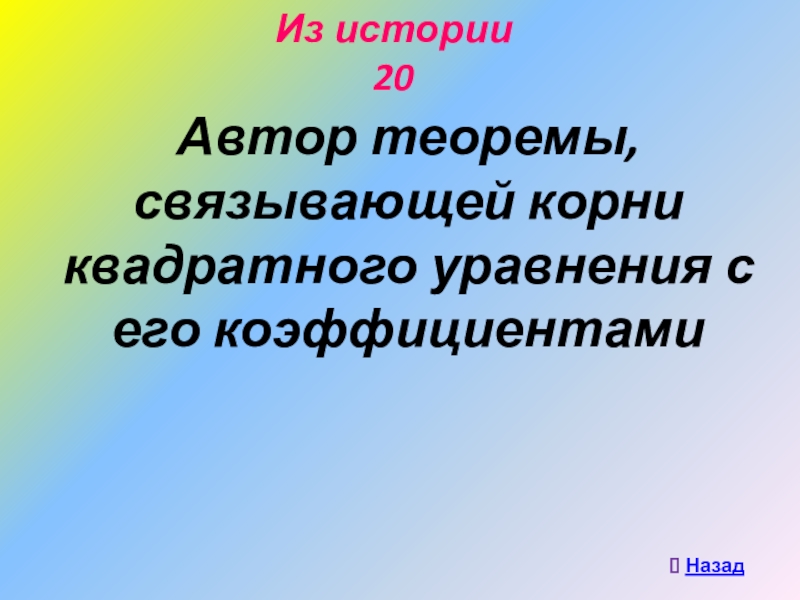 НазадИз истории 20Автор теоремы, связывающей корни квадратного уравнения с его коэффициентами