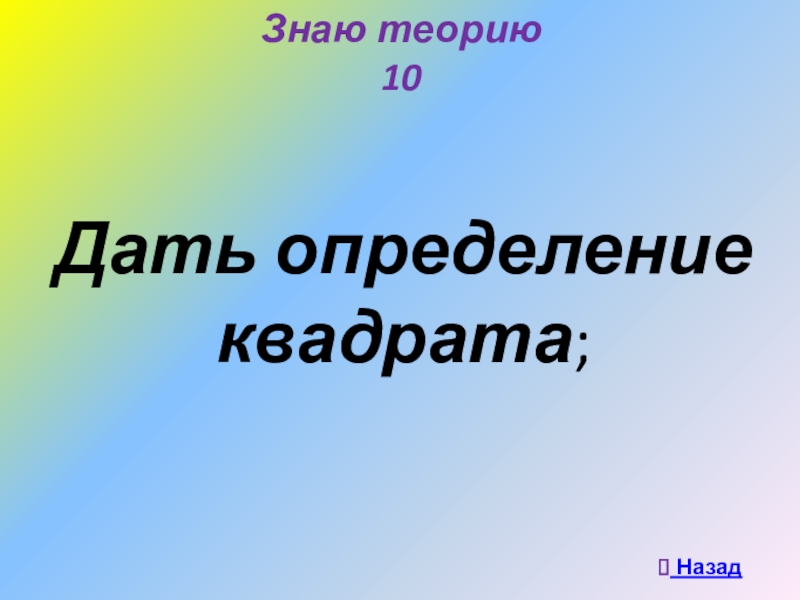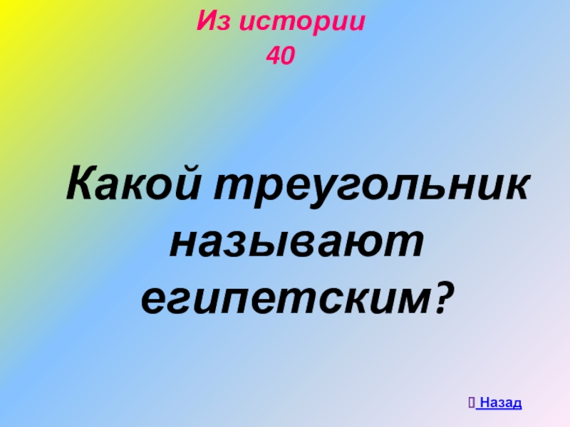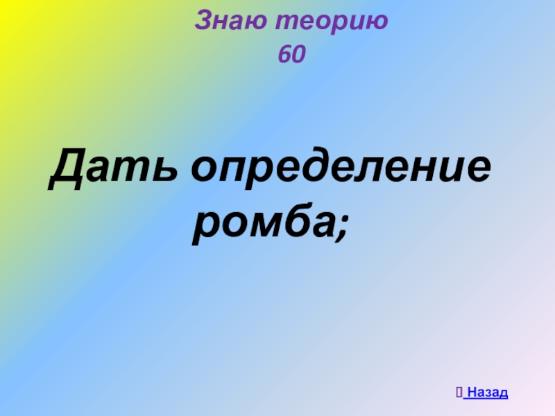 Знаю теорию 50Сформулировать теорему о сумме углов треугольника ; Назад