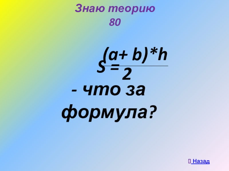 Знаю теорию 80 НазадS =     - что за формула?(a+ b)*h2
