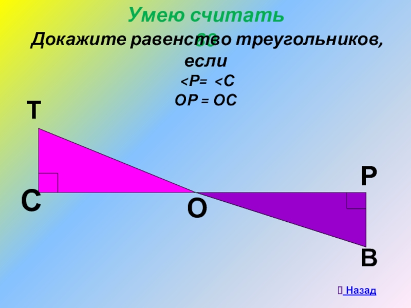 НазадУмею считать 80 Докажите равенство треугольников, если