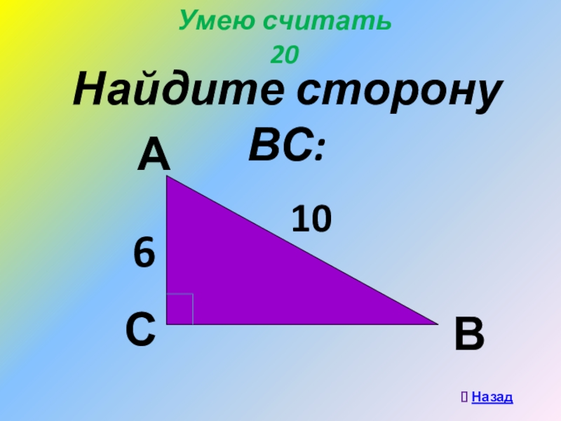 НазадУмею считать 20 Найдите сторону ВС:АСВ106