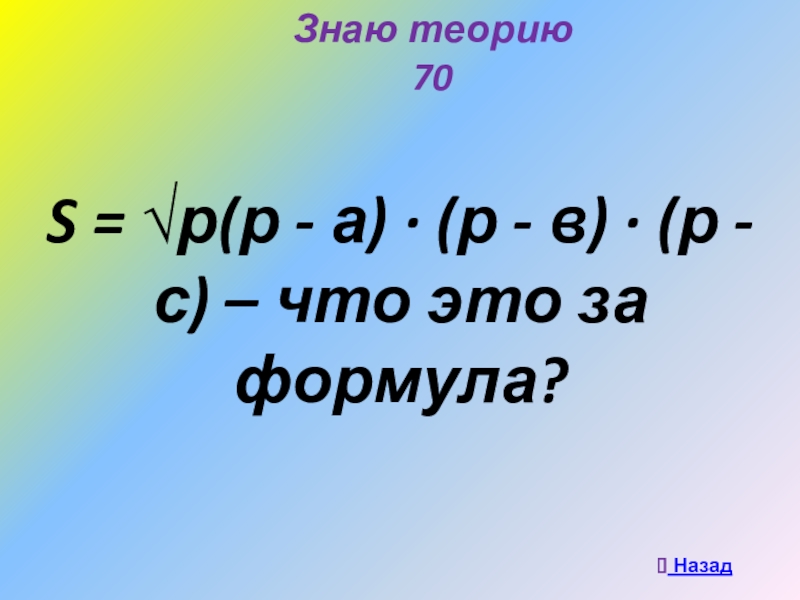 Знаю теорию 70 НазадS = √р(р - а) · (р - в) · (р - с) –