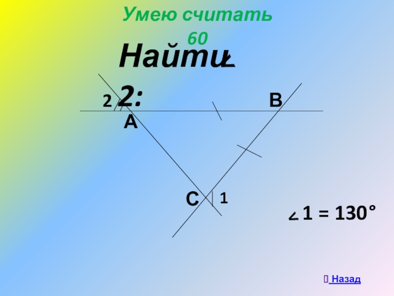НазадУмею считать 60Найти  2:˂1 = 130°˂21АСВ