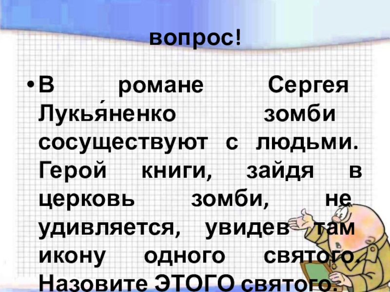 в церковь зомби, не удивляется, увидев там икону одного святого. Назовите ЭТОГО святого.