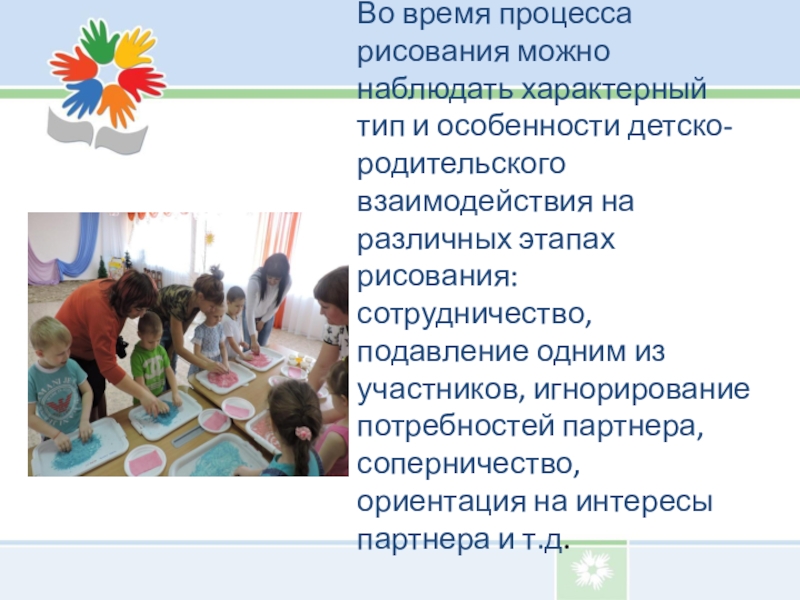 Во время процесса рисования можно наблюдать характерный тип и особенности детско-родительского взаимодействия на различных этапах рисования: сотрудничество,