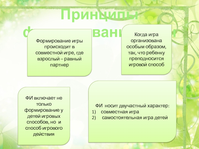 ФИ включает не только формирование у детей игровых способов, но и способ игрового действия
