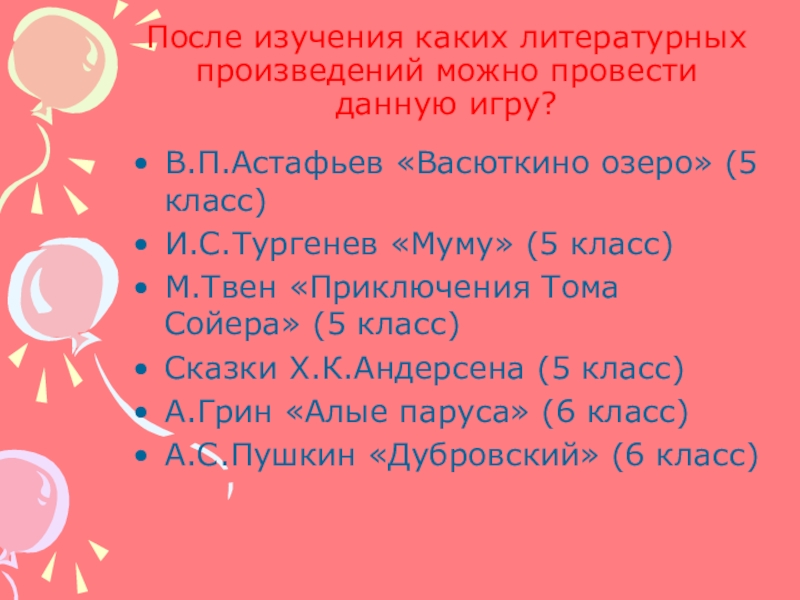 Слайд 18После изучения каких литературных произведений можно провести данную игру?