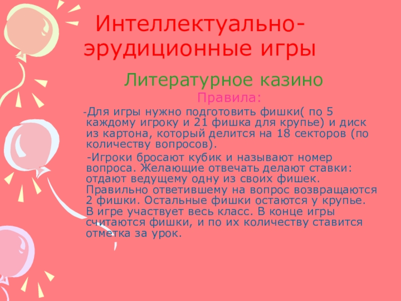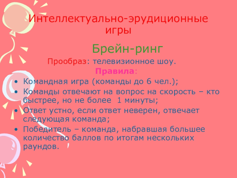 Слайд 9Интеллектуально-эрудиционные игры