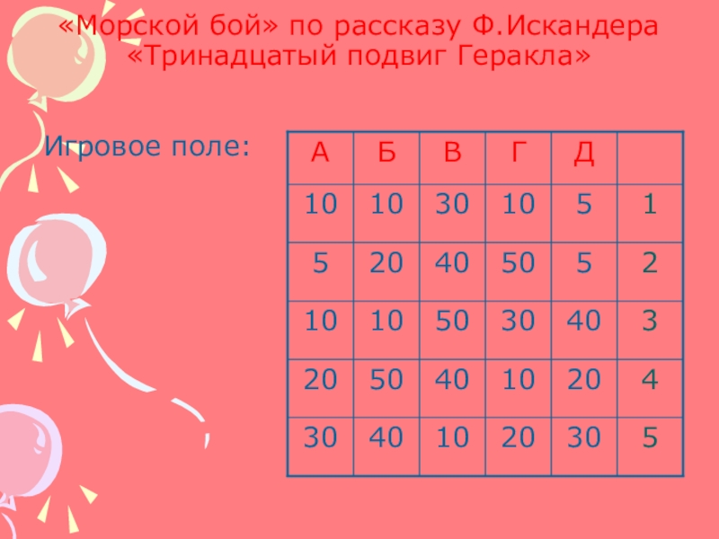 Слайд 20«Морской бой» по рассказу Ф.Искандера «Тринадцатый подвиг Геракла»