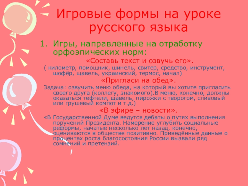 Игры, направленные на отработку орфоэпических норм: