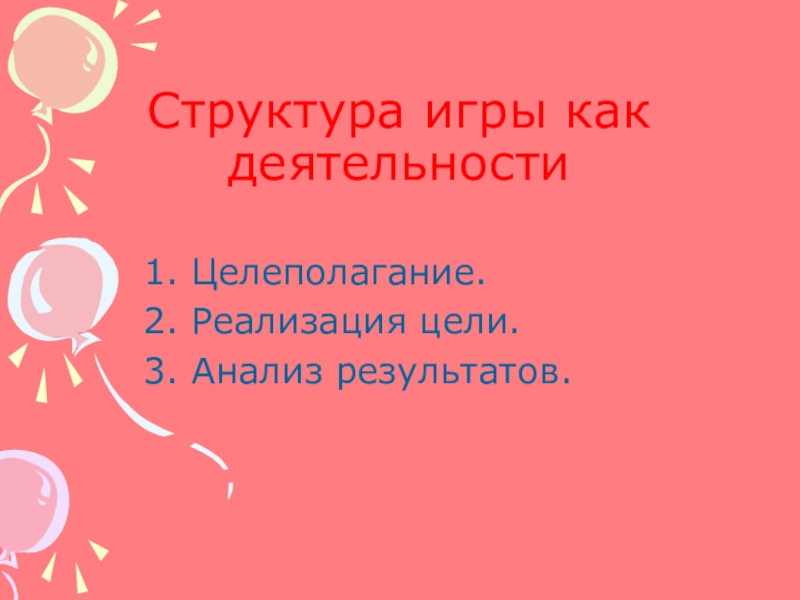 Слайд 3Структура игры как деятельности