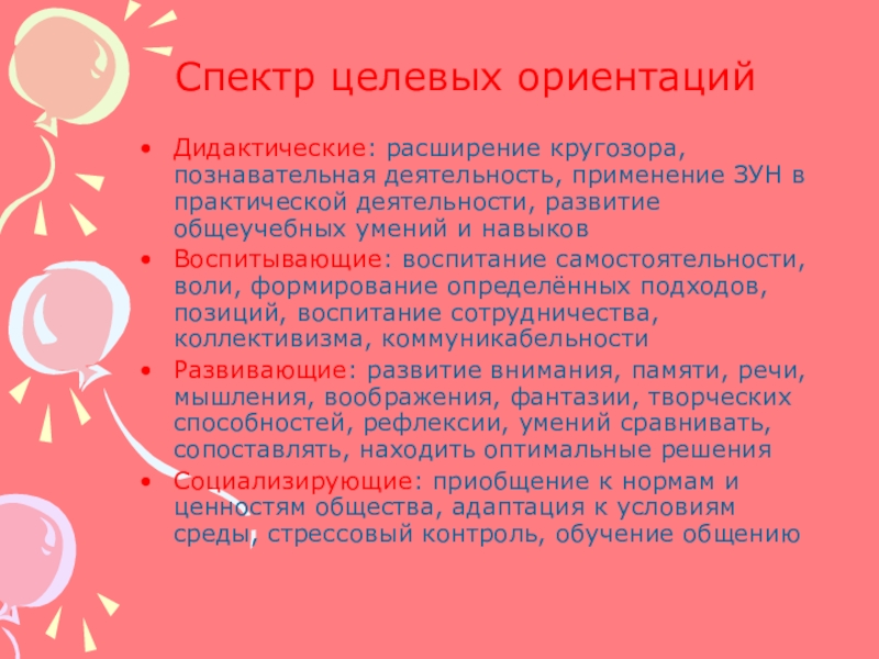 Слайд 5Спектр целевых ориентаций