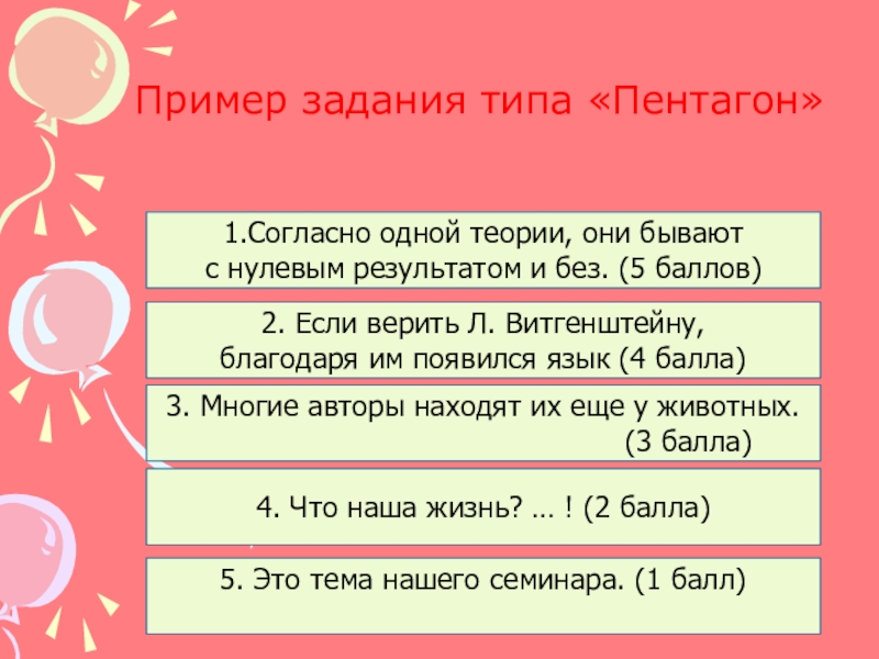 Слайд 11Пример задания типа «Пентагон»